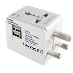 El Adaptador de viaje universal CLiPtec GZJ170 con puerto USB es una unidad compacta de una sola pieza, con cuatro adaptadores internacionales para usar en más de 150 países. El puerto USB proporciona una corriente de salida total de 1000 mA (salida máxima), se puede usar para recargar sus dispositivos USB como iPhone, iPod, reproductor de MP3 / MP4, teléfono móvil, PDA, PSP, NDS, cámara digital y más a través del puerto USB que se puede conectar. El Adaptador de enchufe de viaje universal es muy fácil y seguro de usar. Presiona el botón de liberación de seguridad y simplemente presiona el selector de pin para la región específica ¡y listo!