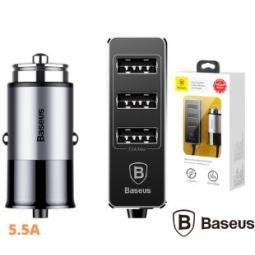BASEUS CCTON-01CARGADOR AUTO 5.5A 4USB CON CABLE EXT NEGRO
