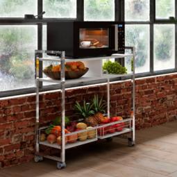 Con rueditas que facilitan su desplazamiento y bandejas inferiores desmontables.