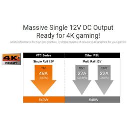 La linea de fuentes VTC son "dignas de confianza". Ideales para el armado de tu PC. De 400w, 500w y 600w estas fuentes de poder son certificadas 80 plus. El rendimiento de VTC supera los requisitos estándar de 80 PLUS, logrando hasta un 84% de eficiencia a 115Vac. Eficacia de conversión de alta potencia. Valor de PF de hasta el 99%, proporciona potencia limpia y confiable Condensadores de modo de espera japoneses de 105 C altamente duraderos y sólidamente confiables
