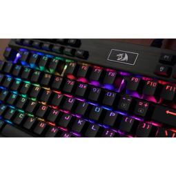 Yama posee retroiluminación RBG configurable para el confort y gusto del usuario, con posibilidades de guardar hasta 5 perfiles dentro de la memoria interna. Marca: Redragon Part Number: K550-1SP Color: Negro Conexión: Clableado con USB. (Goma reforzado, soporta 12 kg y 10.000 flexiones. USB enchapado en oro y filtro anti interferencia) Reposamuñecas: Extraible Dimensiones: 45.5x22.4x2.6 cm Extra: Teclas moldeadas por inyeccion laser de doble disparo, keypicker, USB adicional, rueda de aluminio para control de volumen. Peso: 1.5 Kg Mecanismo: Mecanico Teclas Full size Switch: Outemu Purple, Tactil sin click audible, fuerza de actuacion 62 grs. Material: Matriz 100% anti ghosting con full key rollover. Plastico ABS refrzado y placa de aluminio y anti salpicaduras Iluminación: rgb teclado numérico: Incluido Velocidad de refresc: sin informacion
